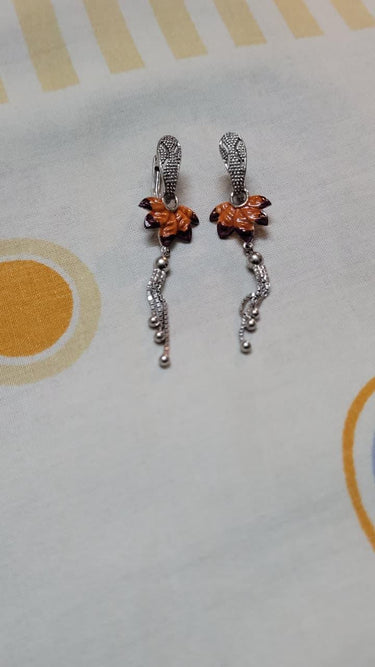 Inspired by nature, these graceful earrings feature a floral design with a curved vine-like extension. The sparkling stones add a touch of glamour, making them a versatile and elegant accessory.