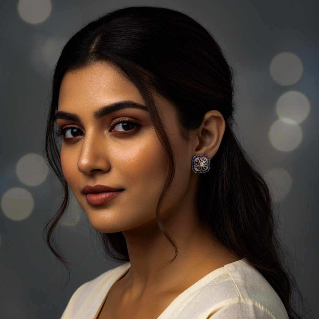 Crafted from 92.5 sterling silver, these enamel flower stud earrings feature vibrant blue, pink, and white cubic zirconia stones. The push-back closure ensures secure wear, while the high-quality enamel finish provides lasting shine and durability. Perfect for weddings, cultural events, and special celebrations, they make an exquisite choice for traditional jewelry lovers seeking a distinctive statement piece.