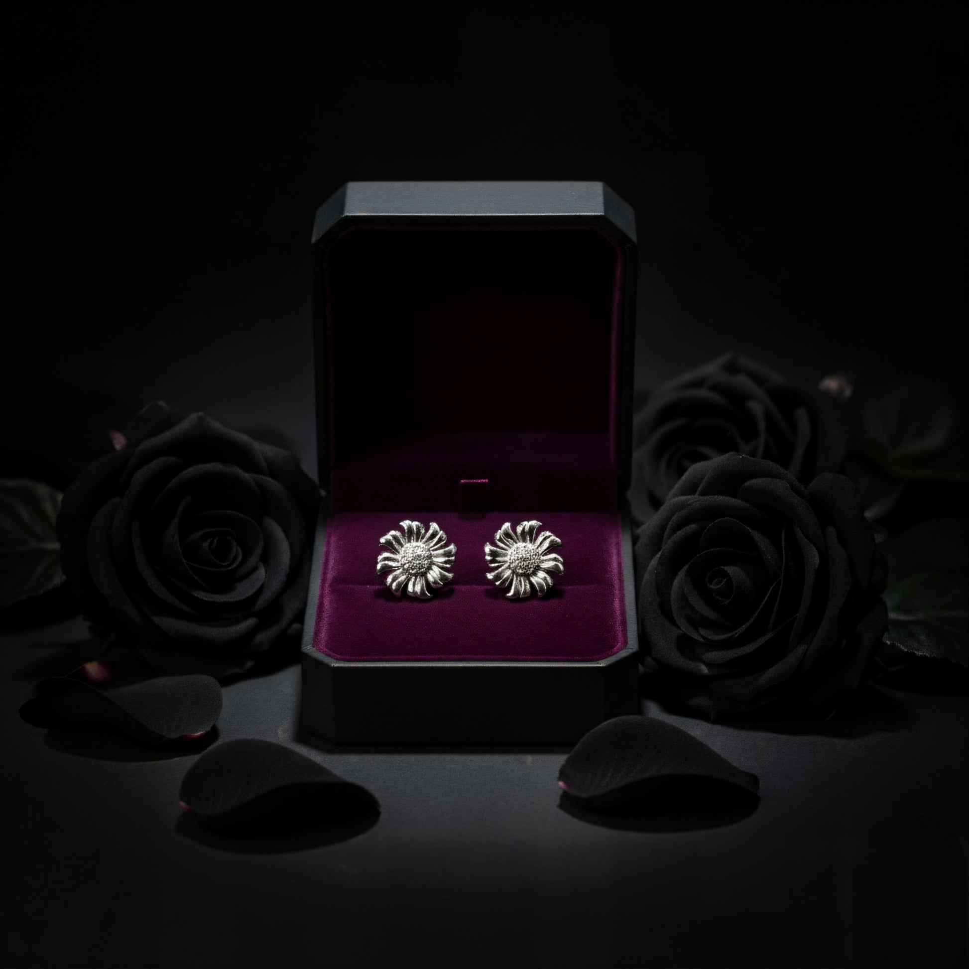 Grace in Bloom — Daisy Delight Earrings Paired with Midnight Blossom Charm