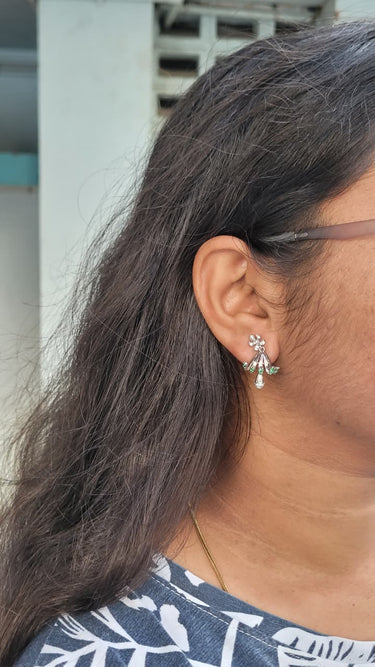 A stunning floral-inspired design that mimics the beauty of a blooming lotus. The intricate silver detailing and sparkling pink stone centerpiece make these earrings a true statement piece.