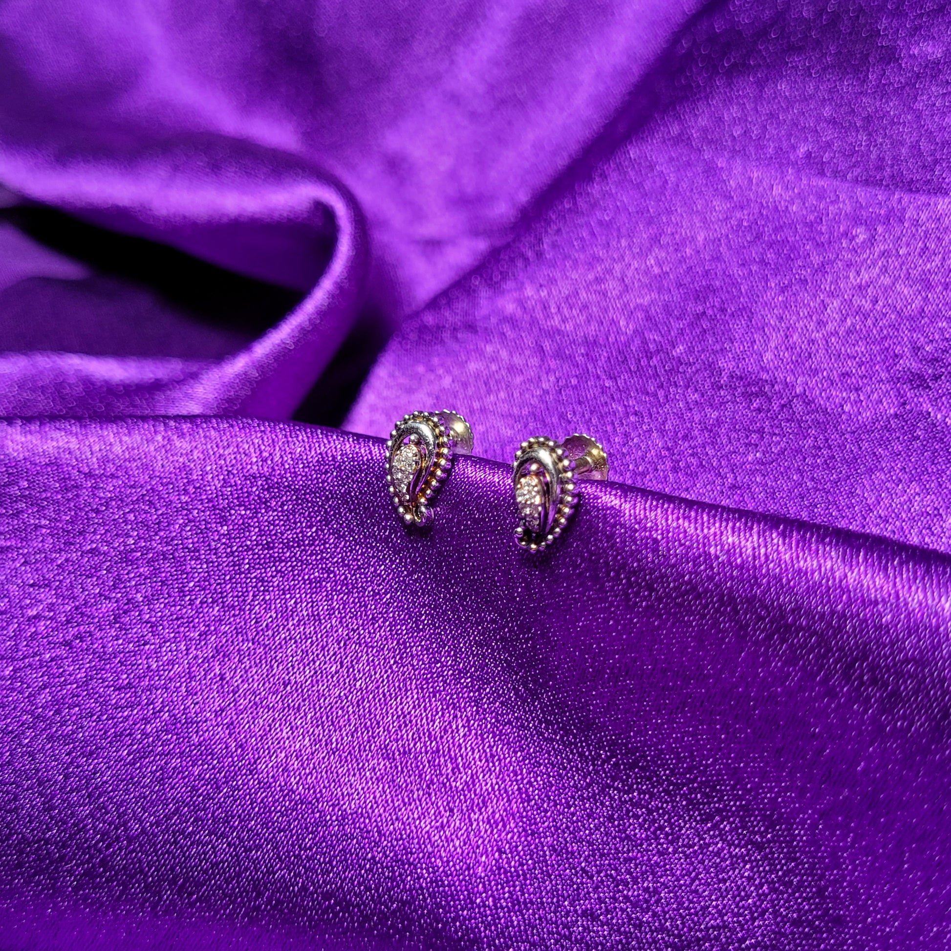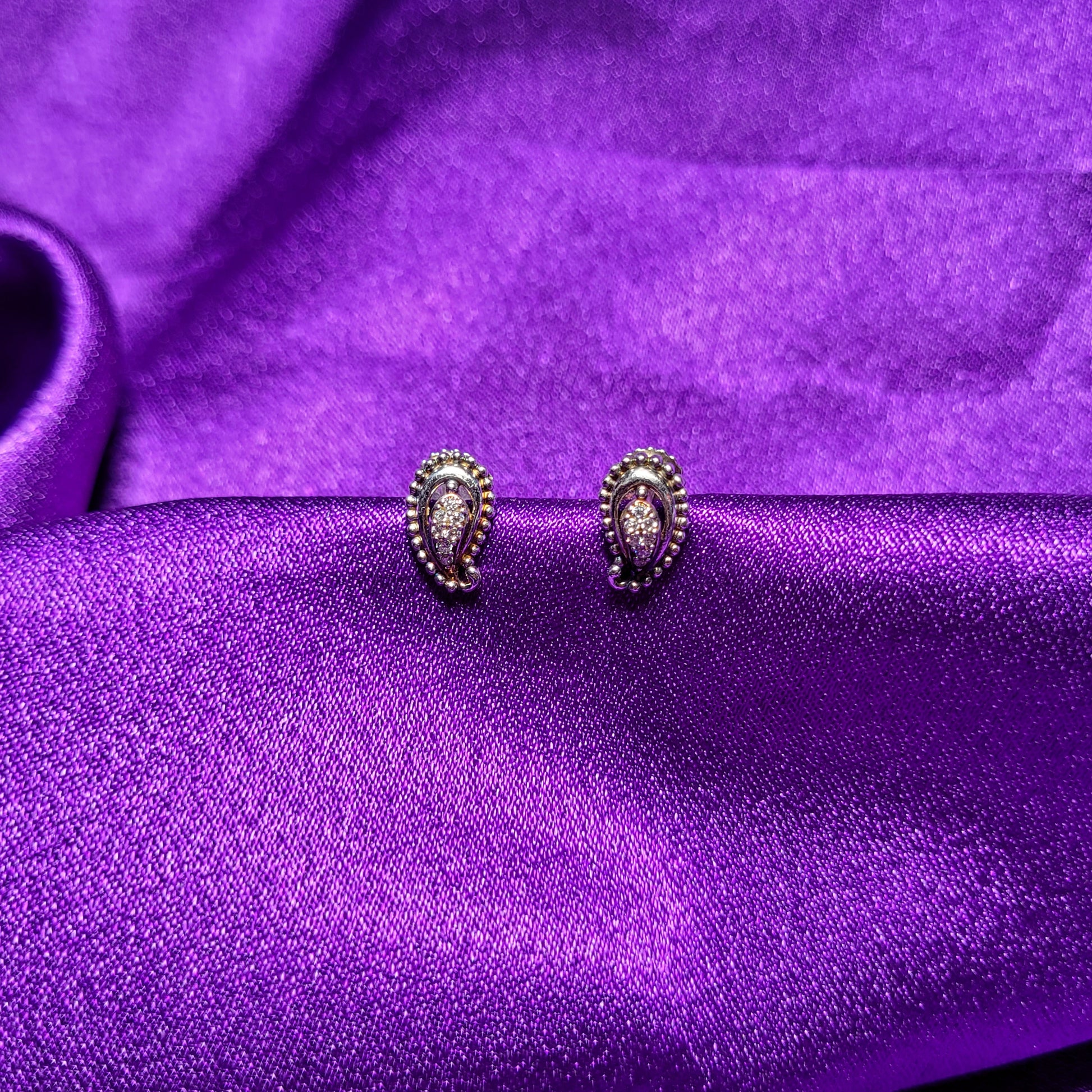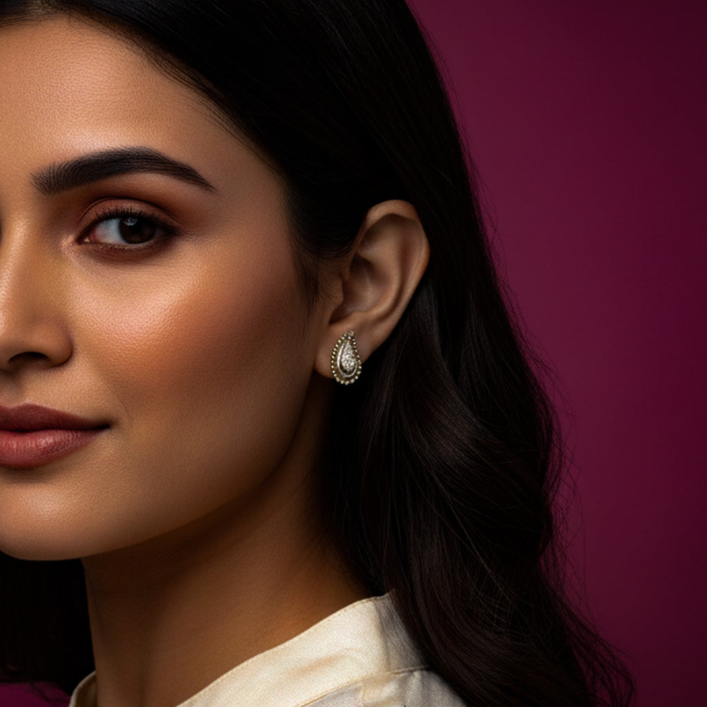 Classic and timeless, these paisley-shaped earrings are enhanced with delicate stone settings and a beaded border, adding a regal touch to any ensemble.